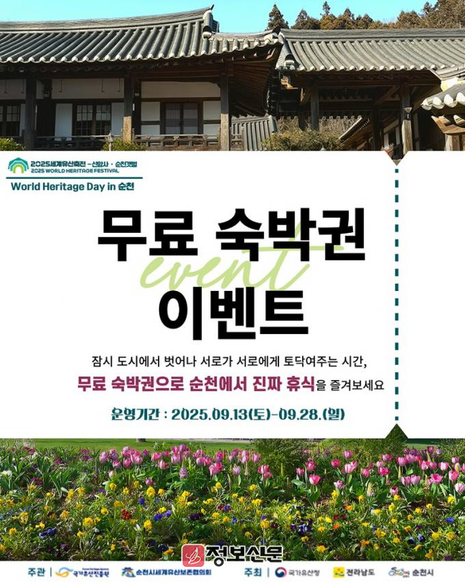 ![]() 순천시, 「월드 헤리티지 데이 in 순천」 1박 2일 숙박권 이벤트 개최 |