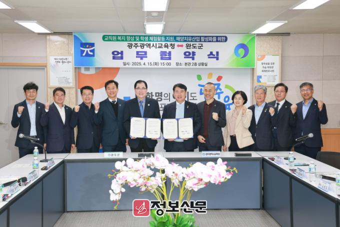 협약식은 4월 15일 광주광역시교육청 상황실에서 진행됐으며, 신우철 완도군수와 이정선 교육감을 비롯한 관계자들이 참석했다.