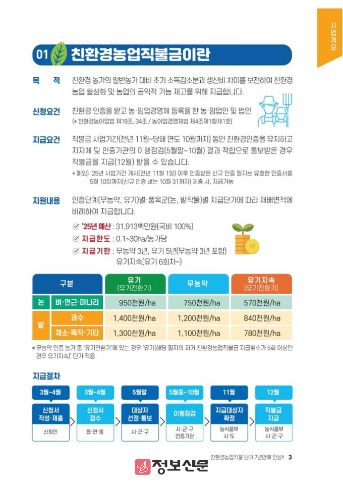 특히, 올해는 2025년 신규 친환경 인증 농가도 작물별 기준 기간 내 인증서를 제출하면 직불금을 받을 수 있다.