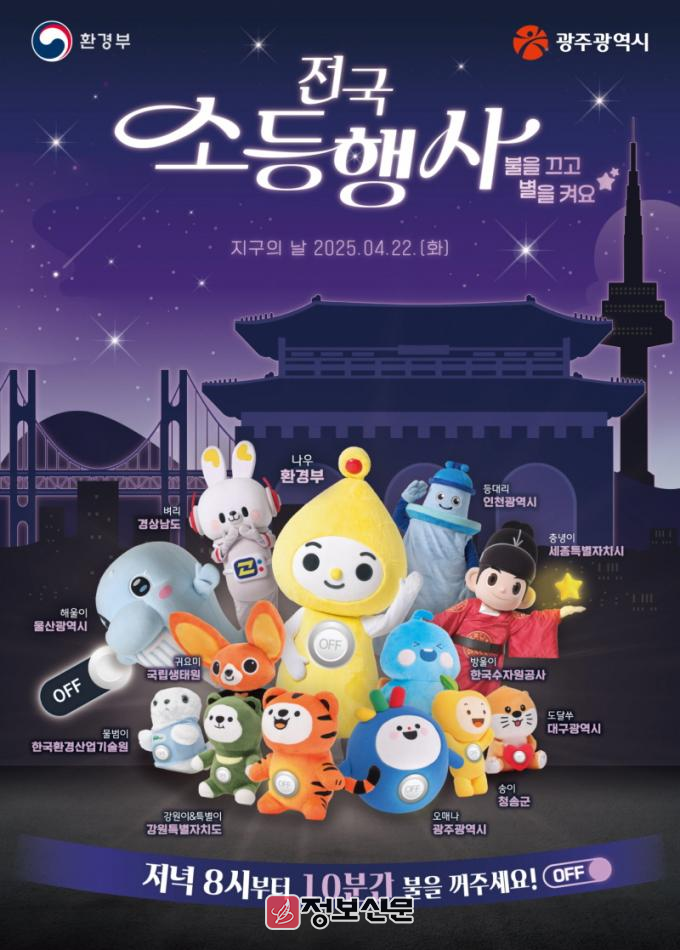 나병춘 기후대기정책과장은 “지구의 날을 맞아 지구의 소중함을 다시 생각하고 일상 속에서 지구를 지키는 작은 실천에 동참하기를 바란다”며 “지구의 날 기념행사와 소등행사에 많은 시민들이 참여해 ‘우리 힘으로 그린(GREEN) 지구’를 만들어갔으면 한다”고 말했다.