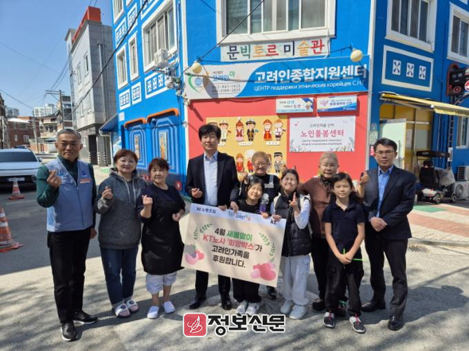 ![]() KT노동조합(위원장 김인관)과 KT는 지난 15일 광주 고려인마을을 찾아 ‘새봄맞이 희망박스’를 전달하며 지역사회에 따뜻한 나눔을 실천했다./사진=고려인마을 제공 |