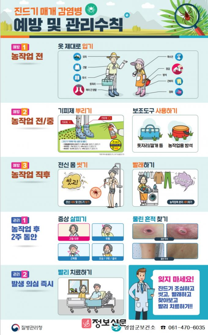![]() 영암군보건소, 봄철 농번기 진드기 매개 감염병 예반관리 집중 홍보기간 운영 |