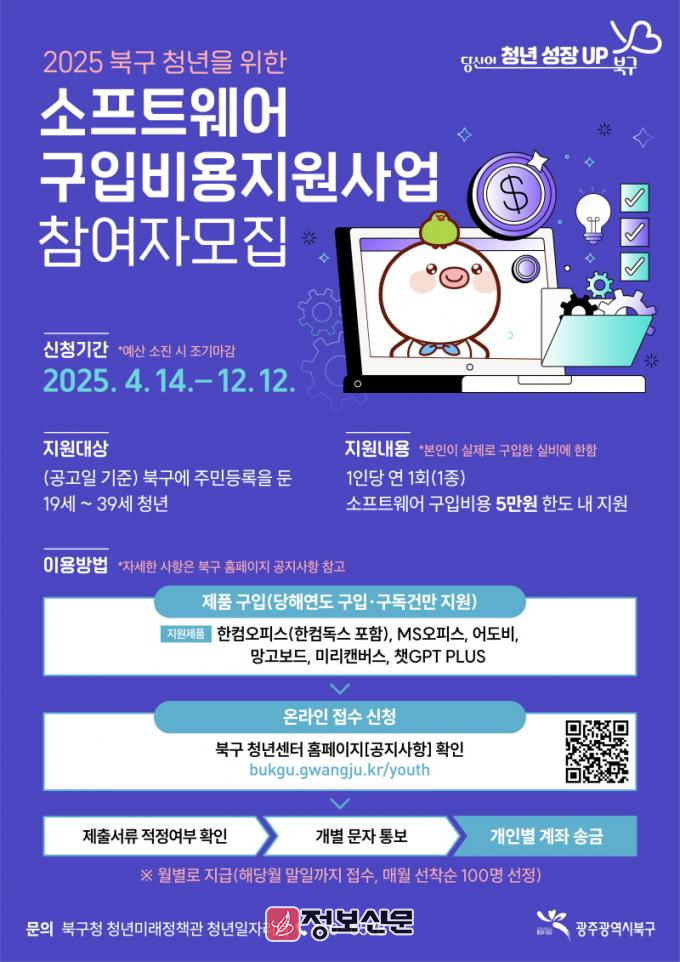 ![]() 광주시 북구, 청년 소프트웨어 구입·구독 비용 지원사업 추진 |