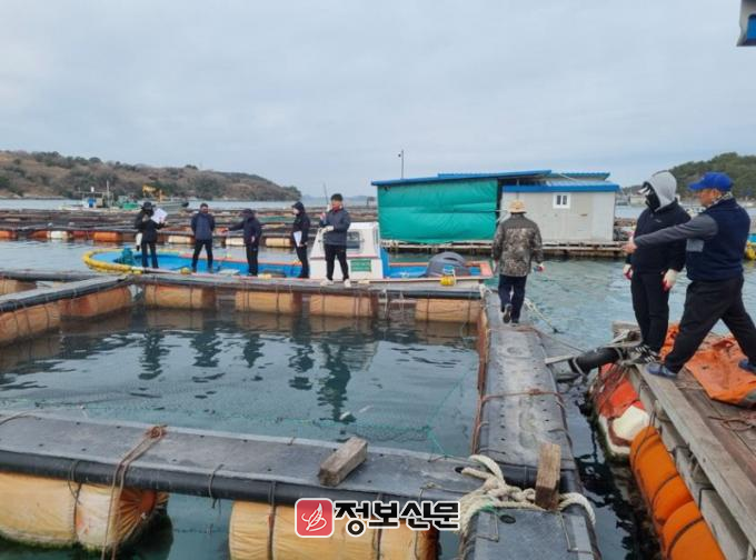 시는 올해 2월과 3월 사이에 발생한 저수온 피해 현황 파악을 위해 전라남도 해양수산과학원과 서남해수어류양식수협, 해당 어촌계, 어업인 등으로 구성된 합동 피해조사반을 구성, 지난달 5일부터 19일까지 15일간 피해 양식장을 순회하며 조사했다.