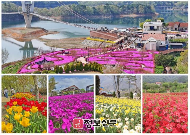 임실군에 따르면 벚꽃들이 개화 절정이 지나고 봄바람과 함께 꽃잎이 날리는 낙화의 아름다운 장면에 더해 붕어섬 생태공원의 봄꽃 경관에 전국 각지에서 관광객들이 몰려들고 있다.