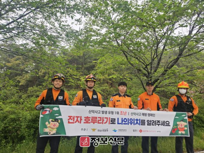특히, 산악사고 예방 캠페인을 통해 위급상황 발생시 버튼을 누르면 경고음이 울려 주변에 위험을 알리어, 신속한 도움을 받을 수 있게 해주는 전자호루라기 홍보에 적극 나서고 있다.