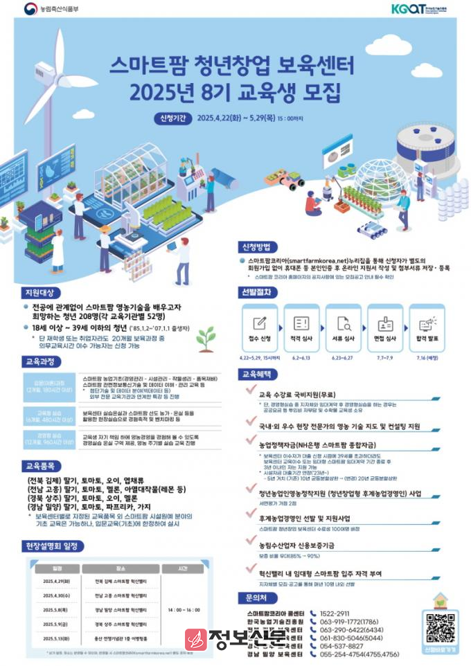 지원자는 ‘스마트팜코리아 누리집(www.smartfarmkorea.net)’에서 별도의 회원가입 없이 본인인증 후 온라인 지원서를 작성하면 된다.