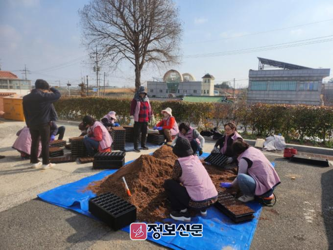 천변 씨앗 심기와 함께 마련된 백일홍 포트는, 꽃이 필 무렵 시종면 각 마을에 나눠져 아름다운 경관 가꾸기에 쓰일 예정이다.