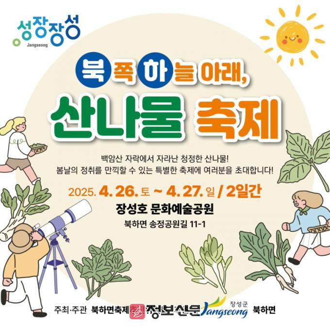 ‘제1회 북쪽하늘아래 산나물축제(이하 산나물축제)’가 오는 26~27일 이틀간 장성호관광지와 북하면 단전리 일원에서 열린다.