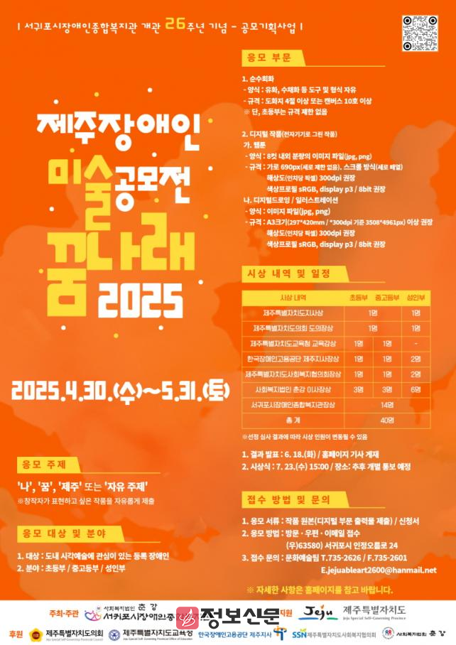 ![]() 서귀포시장애인종합복지관, 2025 제주장애인 미술공모전–꿈나래 개최 |