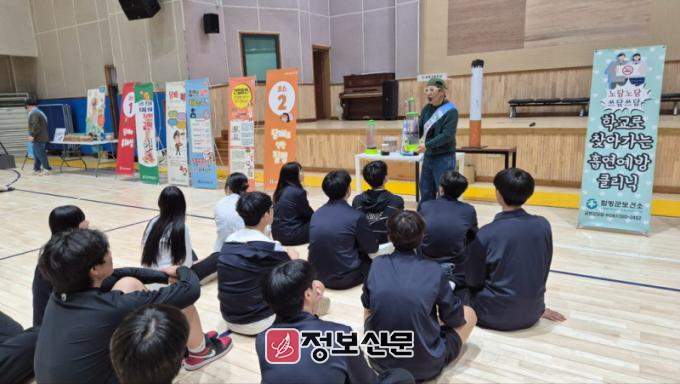 함평군은 24일 “관내 청소년들의 흡연·음주 예방 프로그램 ‘노담노담 쓰담쓰담’을 지난 21일 함평고등학교 재학생 80명을 대상으로 운영했다”고 밝혔다. 프로그램은 청소년의 흡연과 음주 경험 나이가 낮아지는 현실을 반영해 마련됐다.