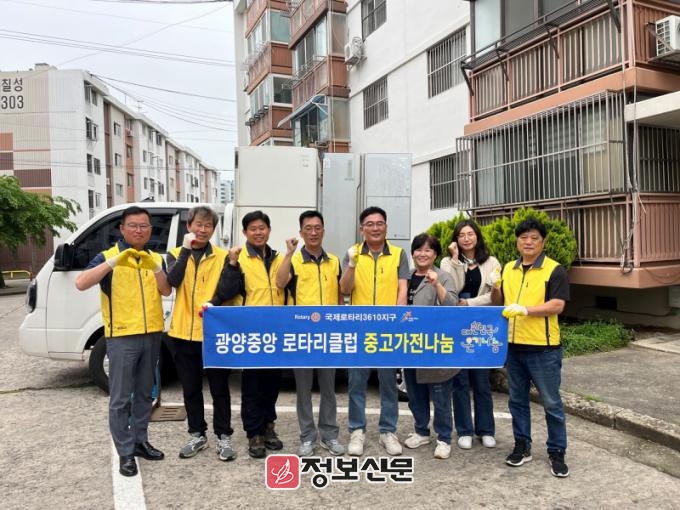 광양중앙로타리클럽은 2015년부터 회원들의 재능기부와 후원을 통해 집수리 봉사, 광양YWCA 급식 봉사 등 다양한 나눔 활동을 지속해왔으며, 2024년부터는 광양읍 및 광양읍지역사회보장협의체와 업무협약을 체결해 생활가전이 부족한 가구를 지속적으로 발굴·지원하고 있다.