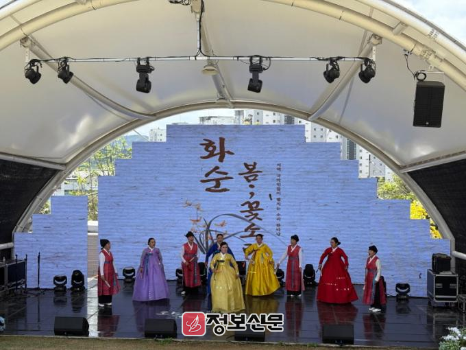 지난 4월 20일 화순읍 남산공원 주무대에서 첫 번째 공연이 열렸다. 전라남도 무형유산 판소리 보유자 화순국악진흥회 김향순 이사장, 국가무형문화재 제5호 판소리(적벽가) 예능 보유자 윤진철 명창과 제자들이 함께 사철가, 적벽가 등 다채로운 무대를 선보였다.