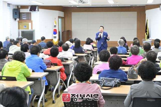 이날 특별 강사로 나선 최영일 군수는“어르신들의 인생에서 가장 행복했던 순간은 언제였는가?”라는 질문으로 강연을 시작하며, 삶의 의미와 행복에 대해 함께 이야기 나누는 시간을 가졌다.
