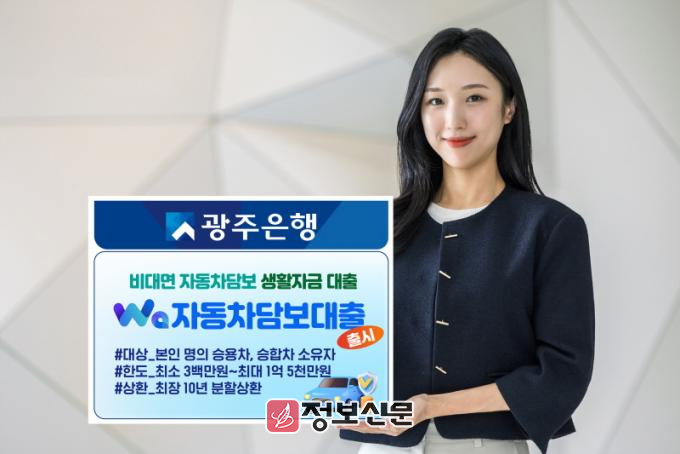 ![]() 광주은행, 비대면 자동차담보 생활자금 대출 Wa자동차담보대출 출시 |
