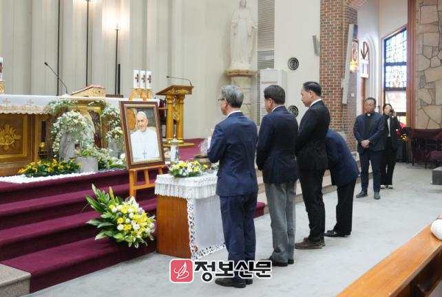 조문에는 오영훈 지사와 도청 주요 간부 공직자들이 함께했으며, 교황의 영면을 기원하며 묵념의 시간을 가졌다.