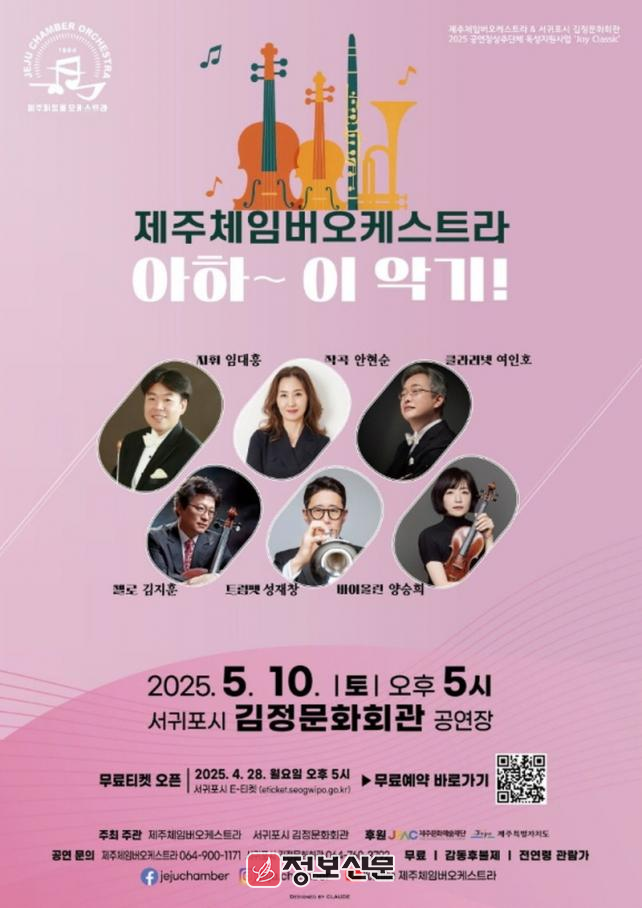 이번 공연은 2025년 김정문화회관 상주단체 기획 공연의 첫 번째 무대로, 제주체임버오케스트라의 《아하~ 이 악기!》를 통해 클래식 음악에서 연주되는 주요 악기를 중심으로 해설과 협연을 결합하여 각 악기의 특징과 매력을 쉽고 흥미롭게 전달할 예정이다.