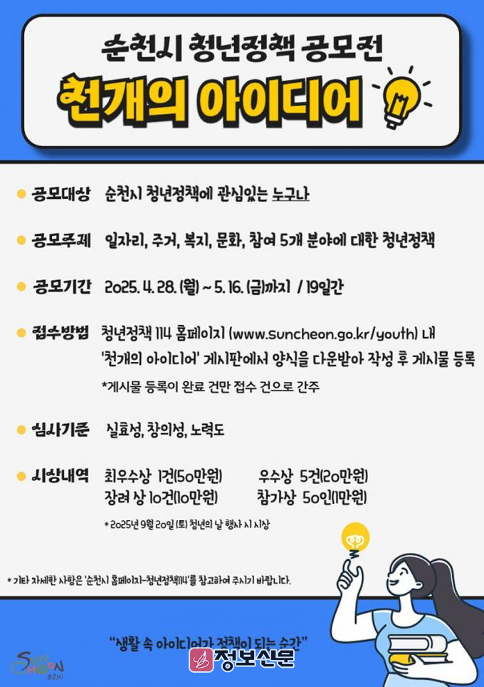 ![]() 순천시, 청년정책 『천(天)개의 아이디어』 공모 |