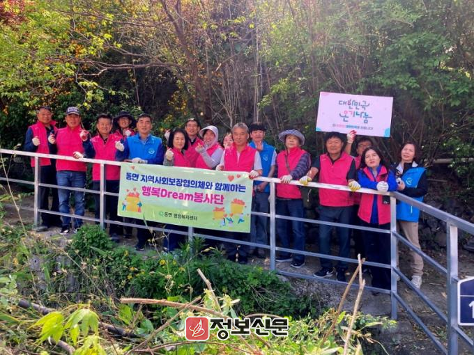 이날 봉사에는 동면 지역사회보장협의체 위원들과 동면행정복지센터 직원들이 함께 참여하여, 주택 입구 잡목 정리·집 청소·생활폐기물 수거 등 실질적인 환경 정비 활동을 진행했다.