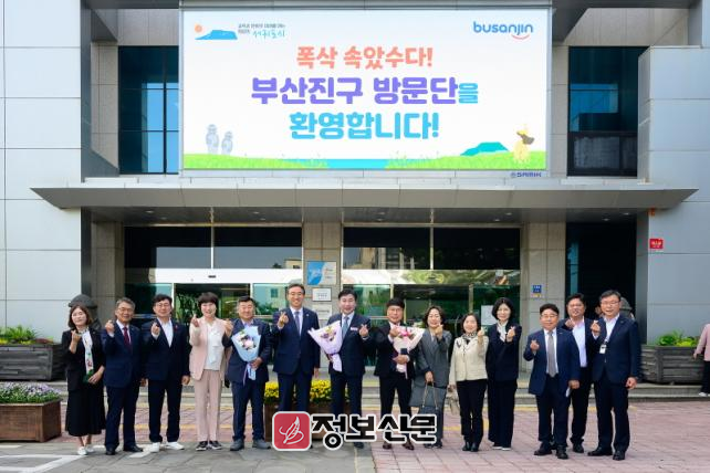 이번 방문에는 김영욱 부산진구청장을 포함해 손재호 행정문화위원장, 오우택 안전복지위원장 등 총 9명이 방문하였다. 대표단은 서귀포시청을 방문해 오순문 서귀포시장, 강상수, 하성용 제주특별자치도의원과 양 도시의 발전 방향과 교류 협력 방안에 대해 따뜻한 분위기 속에서 의견을 나눴다.