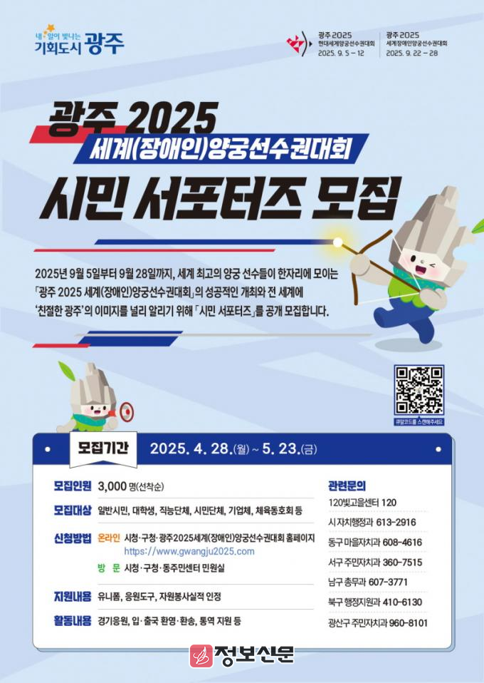 ![]() 광주광역시, 세계양궁선수권대회 시민 서포터즈 모집 |