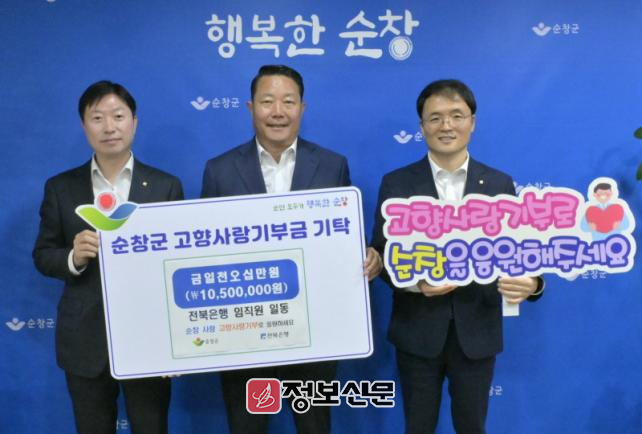 전북은행은 고향사랑기부제가 시작된 2023년부터 순창군에 고향사랑기부금 1,129만 원을 기탁했으며, 2024년에는 850만 원, 올해는 1,050만 원을 기탁해 총 3,000여만 원을 기부했다.