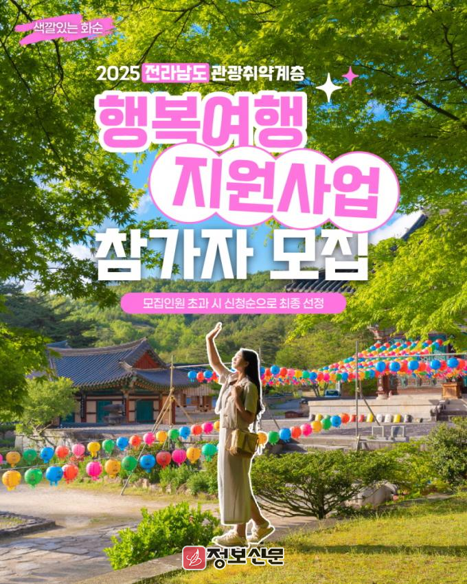 ![]() 화순군, ‘2025년 전남 관광취약계층 행복여행 지원사업 추진 |