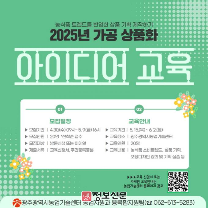 ![]() 광주광역시, 2025년 농식품 가공 상품화’ 아이디어 교육프로그램 운영 |
