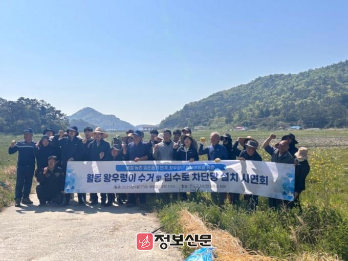 특히 이날 우렁이생산자협회에서는 논 물대기 전 외부에서의 왕우렁이 유입을 막기 위해 단지 용수로에 ‘ㄷ자’형 차단망 설치 시연까지 선보여 농업인에게 왕우렁이 수거 및 관리의 중요성을 홍보하는 등 경각심을 심어 줬다.