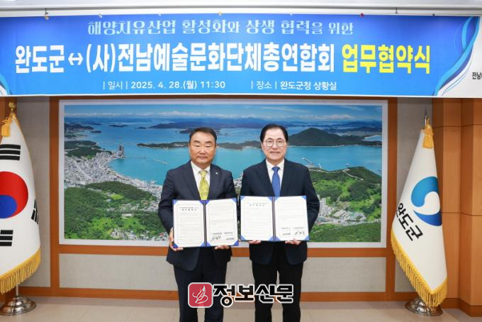 협약식은 4월 28일 완도군청 상황실에서 진행됐으며, 신우철 완도군수와 임점호 전남예총 회장을 비롯한 관계자들이 참석했다. 업무 협약을 통해 해양치유산업과 전남지역 문화예술 발전을 위해 상호 협력하고 교류를 활성화하기로 했다.