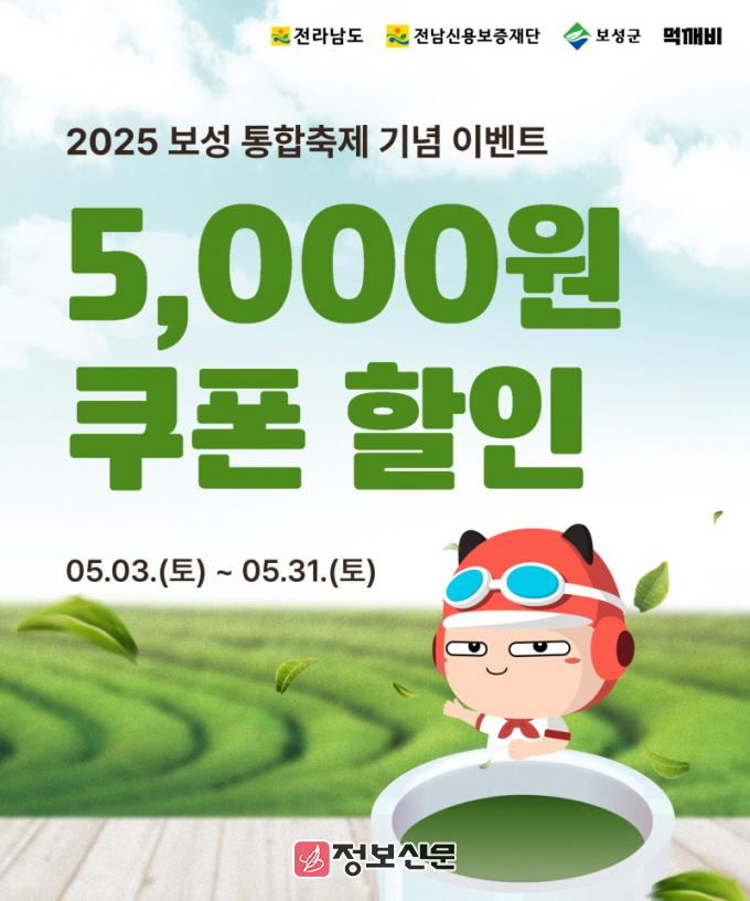 한편, ‘2025 보성통합축제’는 5일간 천년 보성 차를 체험하는 보성다향대축제(5.2. ~ 5.6.), 메타세쿼이아 길을 달리는 보성녹차마라톤대회(5.3.), 만개한 철쭉이 장관을 이루는 일림산철쭉문화행사(5.3. ~ 5.5.), 남도의 소리를 담은 서편제보성소리축제(5.4 ~ 5.6), 온 가족을 위한 보성어린이날 행사(5.5)가 펼쳐져 관광객들에게 특별한 경험을 선사할 예정이다.