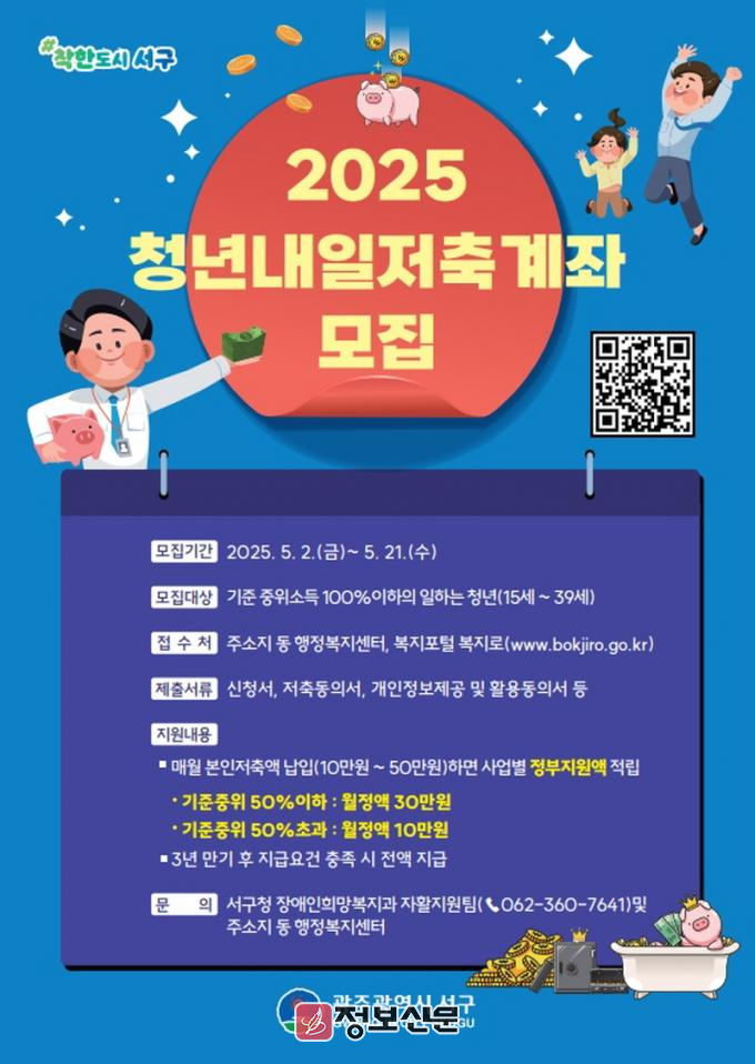 ![]() 광주시 서구, ‘청년내일저축계좌’ 신규가입자 모집 |