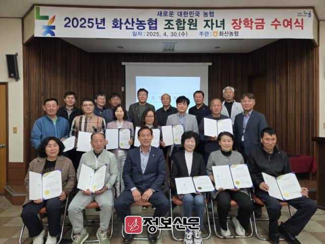 이날 화산농협(조합장 김종채)은 조합원 자녀 15명에게 1명당 장학금 100만원 총 1,500만원을 전달했다.