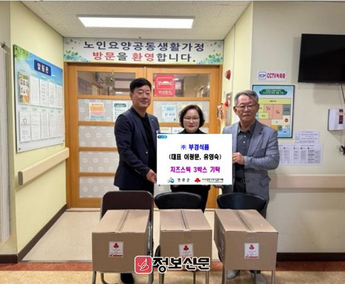 ![]() ㈜부경식품, 영광노인복지센터에 치즈스틱 기탁 |