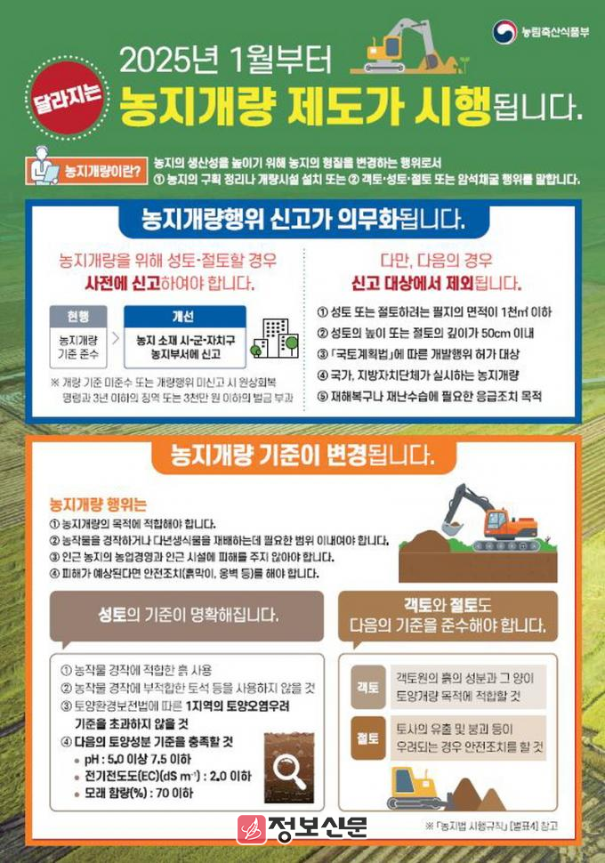 농지개량행위 신고제는 폐기물 불법 매립 및 무분별한 성토로 인한 환경오염과 농지 훼손 문제를 예방하고, 농지의 효율적 관리와 생산성 향상을 도모하기 위해 도입된 제도다.