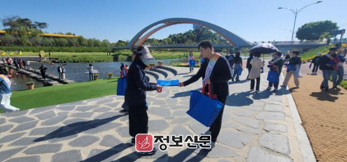이날 홍보 참가자들은 꽃강길 상상정원과 음악분수 주변을 무대로 도로명주소 사용 활성화에 주력했다.