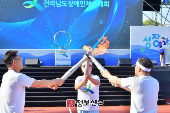 선서는 장성군 파크골프협회 ‘사랑클럽’ 회원인 이재창‧송미숙 선수가 맡았다. 성화는 정태이 장성군 장애인체육회 이사, 김양중 탁구선수에 이어 지난해 전남장애인체전 시각탁구 금메달을 수상한 박영자 선수가 최종 점화를 맡았다.