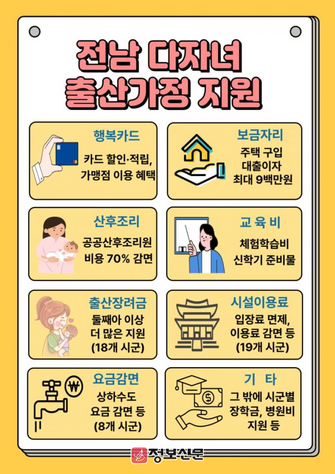 ![]() 전라남도, 다자녀 출산 장려 위한 맞춤형 지원사업 적극 나서 |
