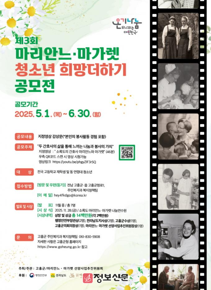 ![]() 고흥군, ‘제3회 마리안느·마가렛 청소년 희망더하기’ 공모전 개최 |