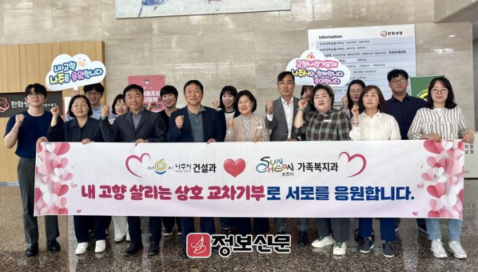 이번 고향사랑기부제 상호 교차 기부는 나주시 최준석 건설과장과 순천시 정미 가족복지과장을 비롯한 관계자 30명이 자발적으로 참여하여 각각 150만 원씩 총 300만 원을 교차 기부해 고향사랑기부제 활성화에 동참했다.