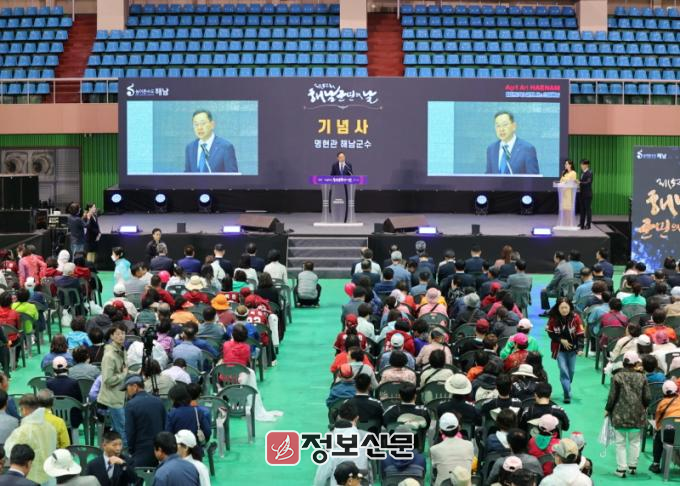 ‘하나되어 꿈꾸고 함께 만들어 가는 새로운 해남’을 주제로 열린 군민의 날 기념식은 군민과 향우들이 화합하여 군정 발전의 의지를 다지는 기념행사와 함께 군정발전 유공자에 대한 시상식 등이 진행됐다. 올해 군민의 상에는 류경록 향우가 선정됐으며, 지역사회발전을 위해 노력한 군정발전 유공자 47명에 대한 시상도 이어졌다.