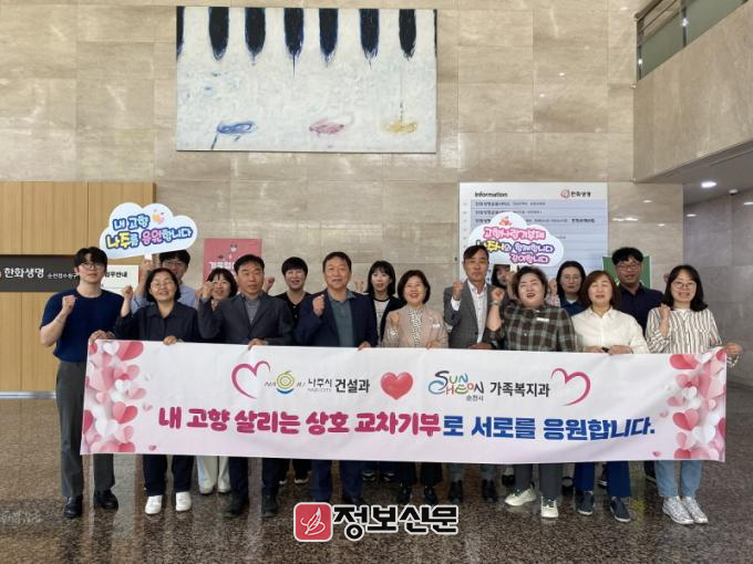 이번 상호기부는 순천시 가족복지과와 나주시 건설과 직원 각 15명씩, 총 30명이 자발적으로 참여해 고향사랑기부금 총 300만원을 상호기부했다. 이는 두 도시 간 복지 협력 강화와 지역경제 활성화를 도모하자는 취지에서 추진됐다.