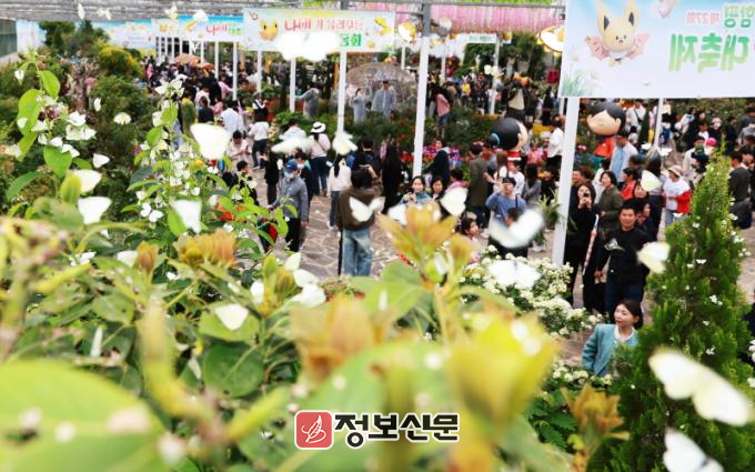 올해 나비대축제는 호랑나비, 배추흰나비 등 17종 20만 마리의 나비와 메리골드, 루피너스, 꽃양귀비 등 30종 50만 본의 다채로운 꽃, 그리고 다양한 공연ㆍ체험 프로그램을 제공하며 어린이와 가족 단위 관광객들에게 즐거움을 선사한 것이 가장 큰 성공 요인으로 보인다. 특히, 중앙광장 야외 나비생태관에서 올해 새롭게 선보인 ‘나비 먹이주기 체험’은 살아 있는 나비와 교감할 수 있는 특별한 체험 기회를 선물해 가장 많은 인기를 끌었다.