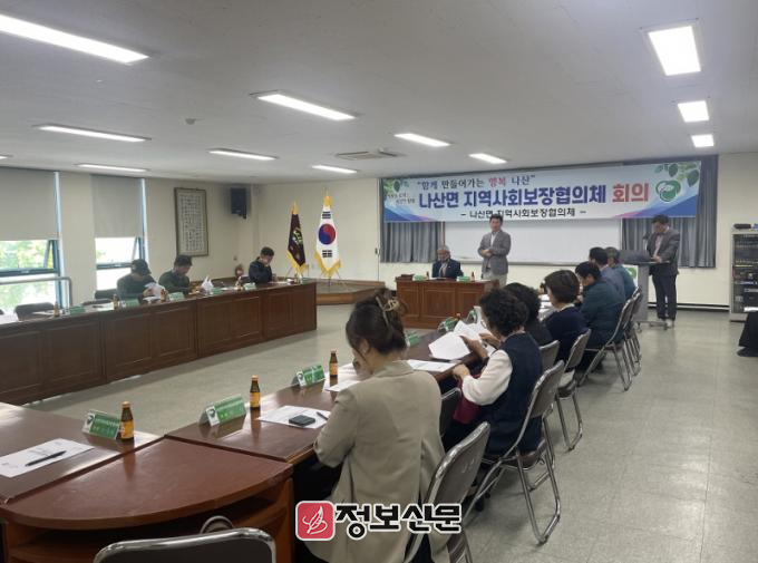 나산면 지역사회보장협의체는 이장단장, 주민자치위원장, 기관사회단체장을 비롯한 21명의 위원으로 구성돼 있으며 현장 지원, 기부 등 다양한 활동을 추진하며 지역 복지에 앞장서고 있다.