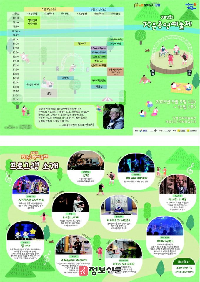 장흥문화예술회관 대공연장 및 야외특설 무대에서 열리는 제2회 작은공연예술제는 전라남도문화재단 공모사업에 선정되어 추진하는 주민참여 축제이다.