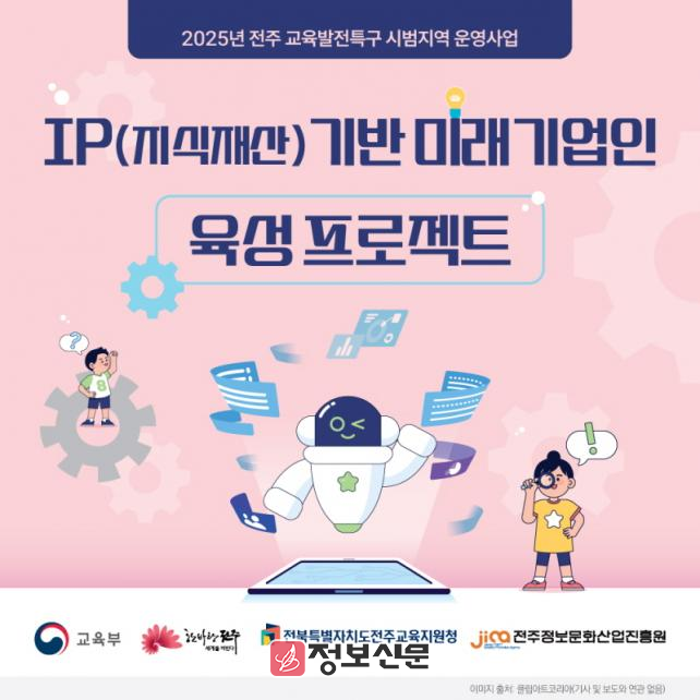 시와 전주정보문화산업진흥원(원장 허전, 이하 진흥원)은 2025년 전주 교육발전특구 사업의 일환으로 IP(지식재산) 인식 확산과 창업생태계 마련을 위한 ‘IP(지식재산)기반 미래기업인 육성 프로젝트’에 본격 착수했다고 7일 밝혔다.