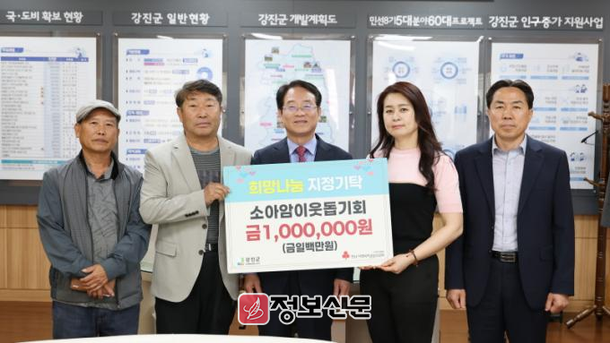 ![]() 소아암이웃돕기회, 강진군에 지정기탁금 100만 원 전달 |