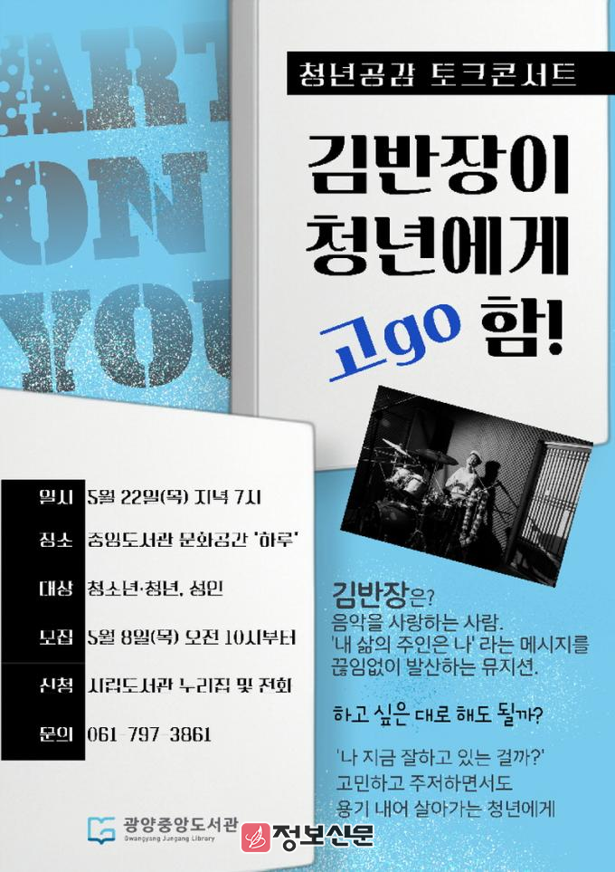 ![]() 광양중앙도서관, 뮤지션 김반장 초청 ‘청년공감 토크콘서트’ 개최 |