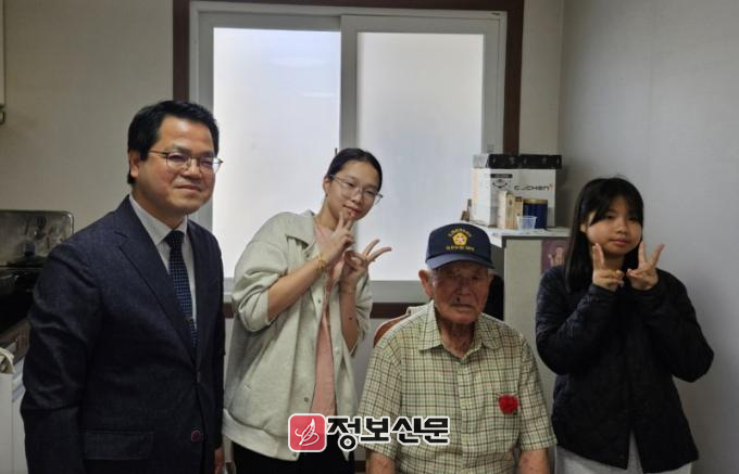 올해로 100세를 맞은 6・25참전유공자 기○○님은 “6・25전쟁이 일어난 지 75년이 되어 가는데, 잊지 않고 찾아와 줘서 고맙고 어린 학생들이 꽃을 달아주니 너무 기쁘다.”고 전했다.
