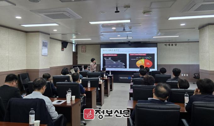 강의는 여성가족부에서 파견된 이경하 박사(충청남도사회서비스원 정책연구실 연구위원)가 맡아 ▲성희롱·성폭력 관련 보직자의 역할과 책임 인식 ▲성인지적 관점과 조직문화의 연계성 ▲사건 발생 시 대응 절차 및 피해자 보호 방안(2차 피해 예방 포함) 등을 중심으로 보직자들과 직접 소통에 나섰다.